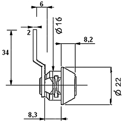 Schliessweg 90° (1-mal abziehbar rechts), mit 2 Zackenschlüssel