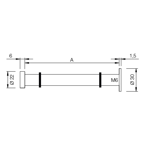 Edelstahl matt, mit 2 Gummiringen schwarz, mit Rosette, für Wandbefestigung, mit Befestigungsmaterial