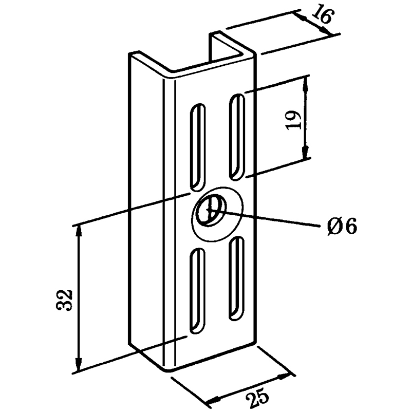 Stahl weiss einbrennlackiert, U-Profil 25 x 16 mm, Materialstärke 2 mm, mit 2 Lochreihen, Lochdistanz 13 mm