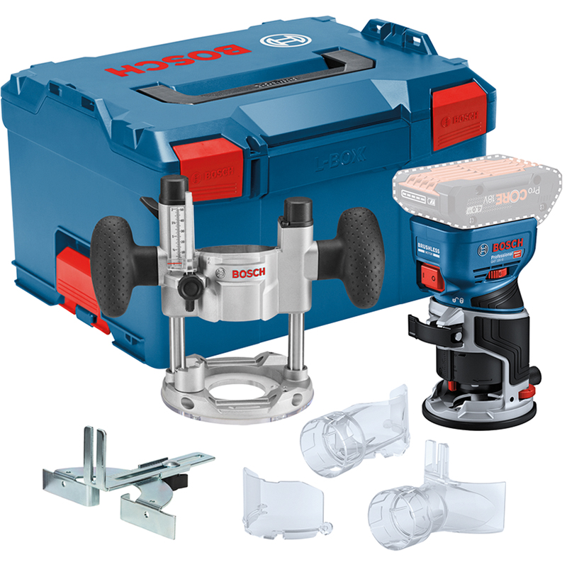 18V-Kantenfräse mit der geringsten Höhe unter den Kantenfräsen für weniger Gewicht im oberen Bereich und ausgezeichnete Werkzeugkontrolle, erstklassige Staubabsaugung und Zubehörkompatibilität dank zweckgerichteter Oberfläche und speziellen Saugadaptern sowie marktweit die breiteste Palette an optionalem Zubehör für Kantenfräsen, Tiefenfeineinstellung, handfreie Spindelarretierung, Drop Detection und Doppel-LED-Licht für die höchsten Ansprüche von Profis, ohne Akku, ohne Ladegerät,