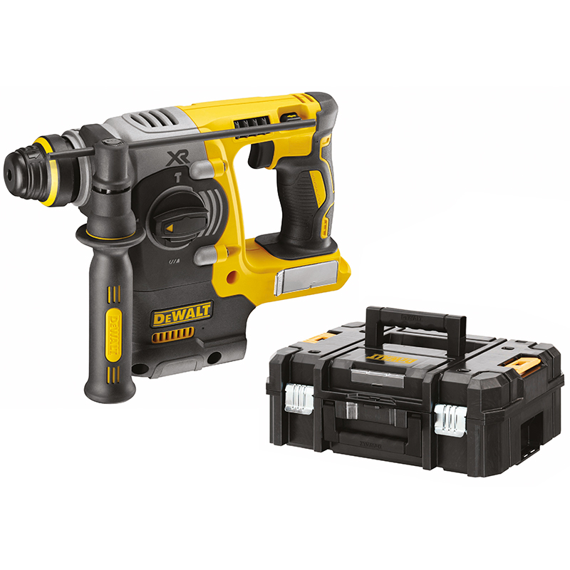 neueste Generation der XR Akku-Kombihämmer mit höherer Leistung, kompakteren Abmessungen, über 50% längere Laufzeit pro Akkuladung sowie höhere Lebensdauer durch innovative, bürstenlose Motor-Technologie, ideal für Bohranker und Befestigungslöcher in Beton, Ziegel und Mauerwerk von 4 bis 24 mm, Drehstopp für leichte Meisselarbeiten in Putz und Fliesen sowie Schlagstopp für Bohrarbeiten in Holz und Metall, Perform & Protect: sicheres und ermüdungsarmes Arbeiten durch effektivste Vibrationsreduzierung, elektronische Kupplung für ein gleichmässig hohes Drehmoment und eine noch höhere Lebensdauer, hoher Bohrfortschritt durch optimal abgestimmtes elektropneumatisches Hammerwerk, leistungsstarke, hellweisse LED-Leuchte mit optimal ausgerichtetem Lichtkegel, ohne Akku, ohne Ladegerät,