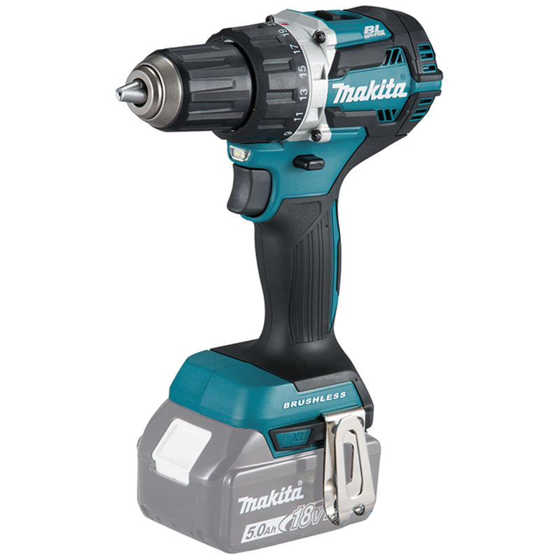 leichte, kompakte, robuste und kraftvolle Maschine, ohne Kohlebürsten, ideal für enge Stellen, Links- und Rechtslauf, 2-Gang Aluminium-Getriebegehäuse, stufenlose Geschwindigkeit, Schiebeschalter für Drehrichtungsänderung im Handgriff integriert, Vollmetall-Planetengetriebe, Drehmoment in 2x 21 Stufen einstellbar, mit Bohrstellung, automatische Spindelarretierung für einhändigen Werkzeugwechsel, Rutschkupplung und Motorbremse, verstärkter Feuchtigkeits- und Staubschutz mit dem XPT-System, doppelte LED-Beleuchtung, Gürtelclip, Griff mit weichem Belag für hohen Arbeitskomfort, ohne Akku, ohne Ladegerät