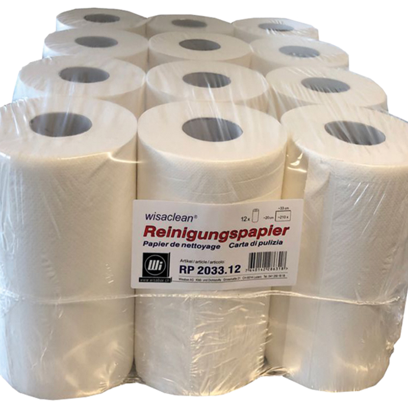weiss, weder fusselnd noch abfärbend, aus 100% Zellstoff, zweilagig, perforiert, geprägt, stabil, auf praktischen Kleinrollen, für den Einsatz mit Reinigungs- und Lösemitteln oder zum Reinigen der Fugenspachtel,