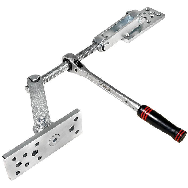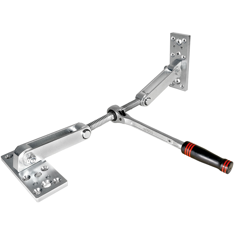 Platte 160 x 60 mm, 360° drehbar, mit Bohrungen Ø 8 und 12 mm, Verarbeitung von Massivholzwänden Brettstapeldecken, Dachelementen uvm., schnelle, einfache und materialschonende Befestigung, hinterlässt nur minimale Verarbeitungsspuren, stabiles Trapezgewinde 16 x 4 mm, Befestigung in jeder Lage möglich