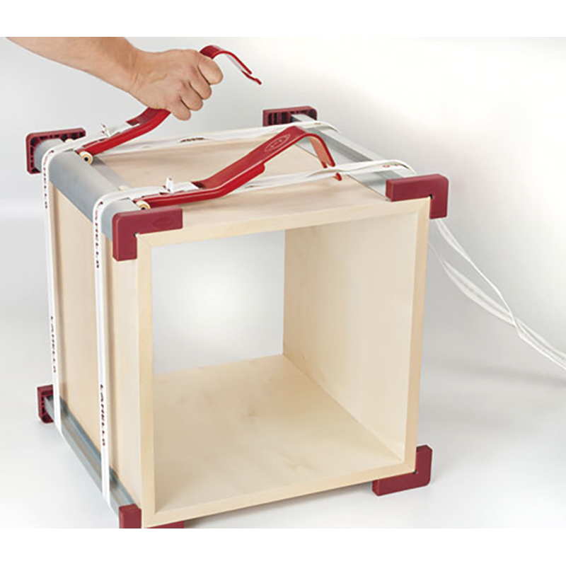 Spannerset ist ein Spannsystem zum Verleimen von Korpussen und diversen anderen Bauteilen im Möbelbau und ist die Ergänzung zum Lamello System, im Gegensatz zu Zwingen ist die Druckverteilung immer gleichmässig, wodurch Möbel automatisch rechtwinklig gespannt werden, egal ob die Platten stumpf oder in Gehrung verleimt werden, Spannerset ist ideal für Schubladen, Korpusse, Rahmen oder Wand- und Bodenplatten