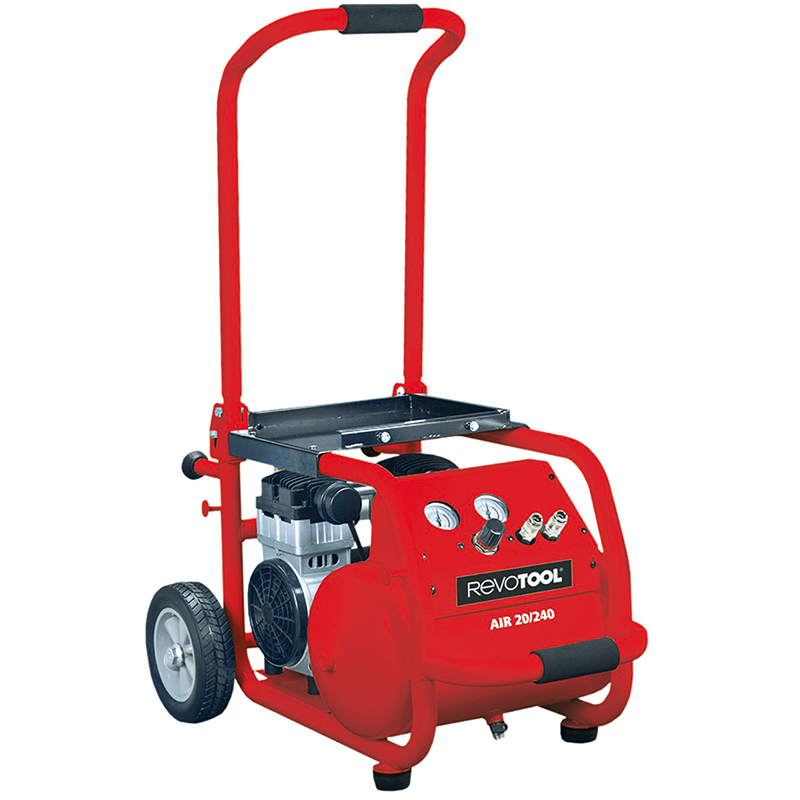Kompressoranlage AIR 20/240, ölfrei, vollautom., mobile Ausführung, Ölfreies Kompressoraggregat, einstufig, 2-Zylinder, CE-konform, autom. Druckschalter MDR1 mit Entlastungsventil, Manometer für Behälterdruck, Rückschlagventil und Sicherheitsventil, Druckluftbehälter mit Kondensat-Ablassventil, 10m Anschlusskabel mit Stecker 230 V, Druckregler mit Manometer