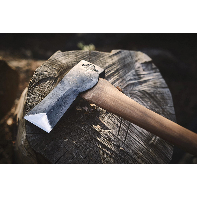 robuste Spaltaxt für schwerere Aufgaben wie das Spalten von Baumstämmen und Holz, durch die konvexe Form des Kopfes lässt sich das Holz leicht spalten, langer und gerader Griff aus amerikanischer Hickory, um maximale Geschwindigkeit und Kontrolle beim Spalten zu erreichen, die Axt ist handgeschmiedet und aus schwedischem Qualitätsstahl hergestellt, die Schneide ist geschliffen, poliert und gebrauchsfertig, mit Kantenschutz aus Leder