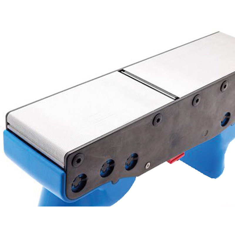 Schnellverstellung und Messerwechsel über den roten Exzenter-Hebel