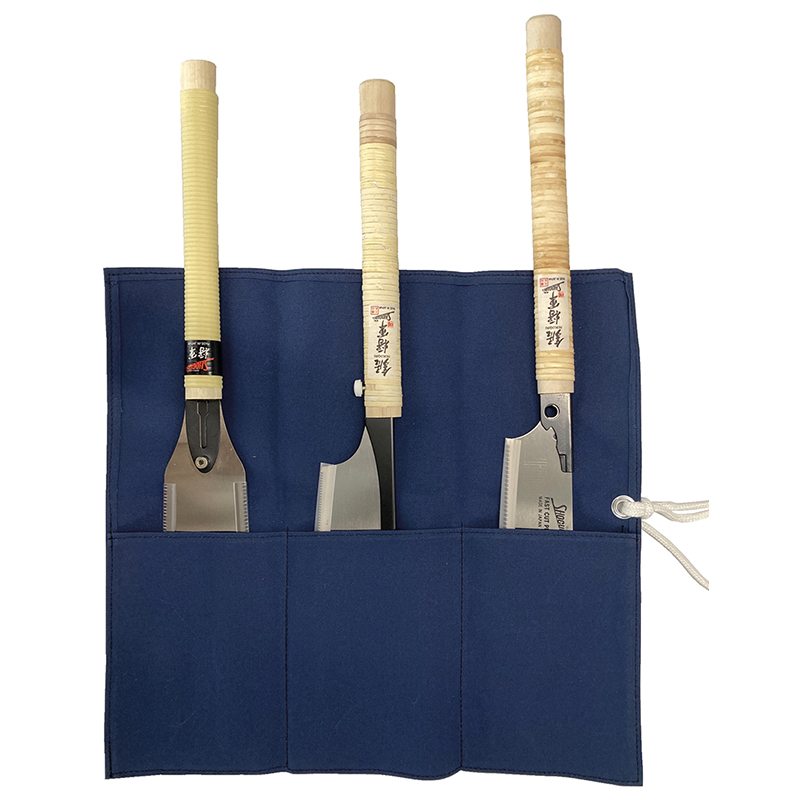 3 Original Japan-Zugsägen mit praktischer Rolltasche,