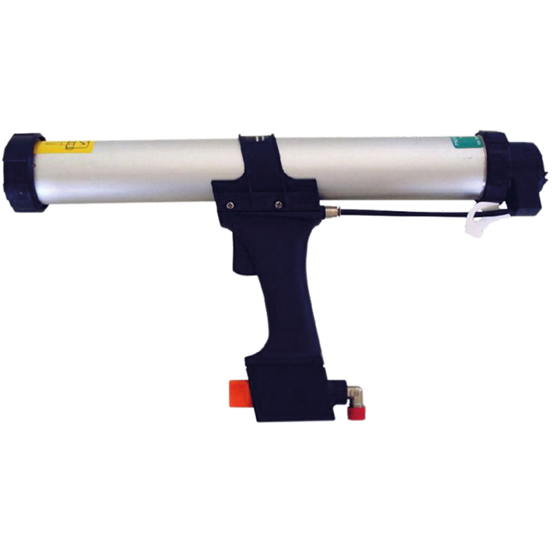 für Schlauchbeutel mit Standard-Füllmenge bis 600 ml, mit Schalldämpfung, dank automatischer Kolben-Entlastung kaum Nachlaufen des Kartuscheninhalts, Gewichtverteilung in der Mitte, Gehäuse aus Kunststoff, mit Alu-Rohr, für Produkte mit niedriger bis mittlerer Viskosität (Kleb- und Dichtstoffe), für Raupenauftrag