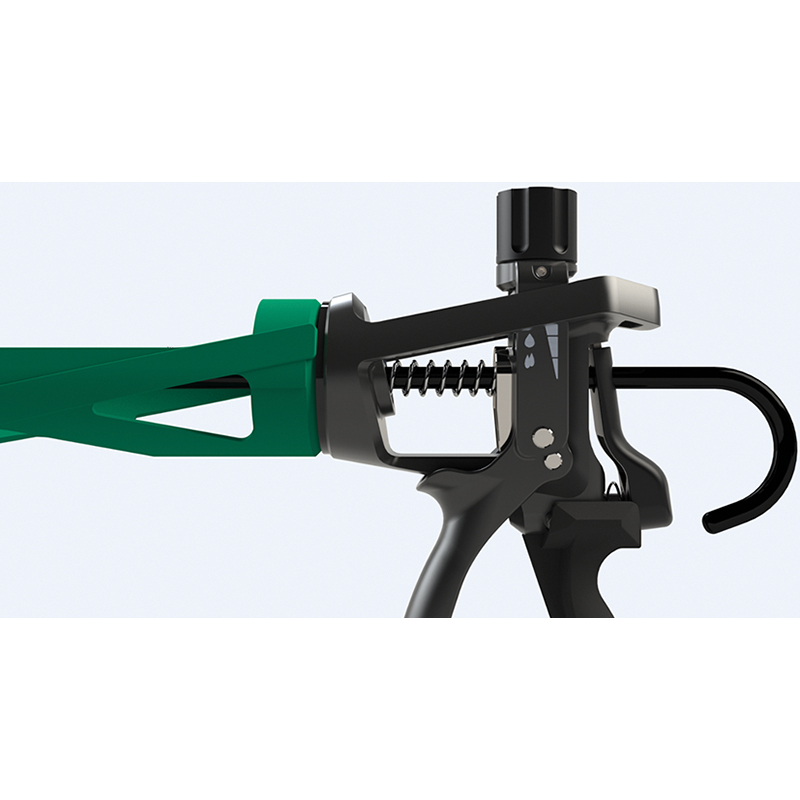 mit stufenlos einstellbarer Kraftübersetzung von 12:1 bis 25:1 (stufenlos regelbar), für 1K-Norm-Kartuschen mit Standard-Füllmenge 290 - 310 ml, für Produkte mit niedriger bis sehr hoher Viskosität, soft Handgriff mit optimierter Ergonomie, komplett gehärtete Stange bis zum Kern, drehbar, manuelle Kolbenentlastung, aus Aluminium und Stahl, für Raupenauftrag, Antrieb manuell