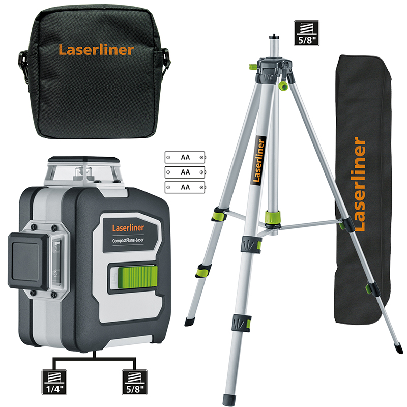 Lieferumfang: Kompaktstativ 150 cm, Batterien, Transporttasche zu Kompaktstativ, Transporttasche zu CompactPlane Laser