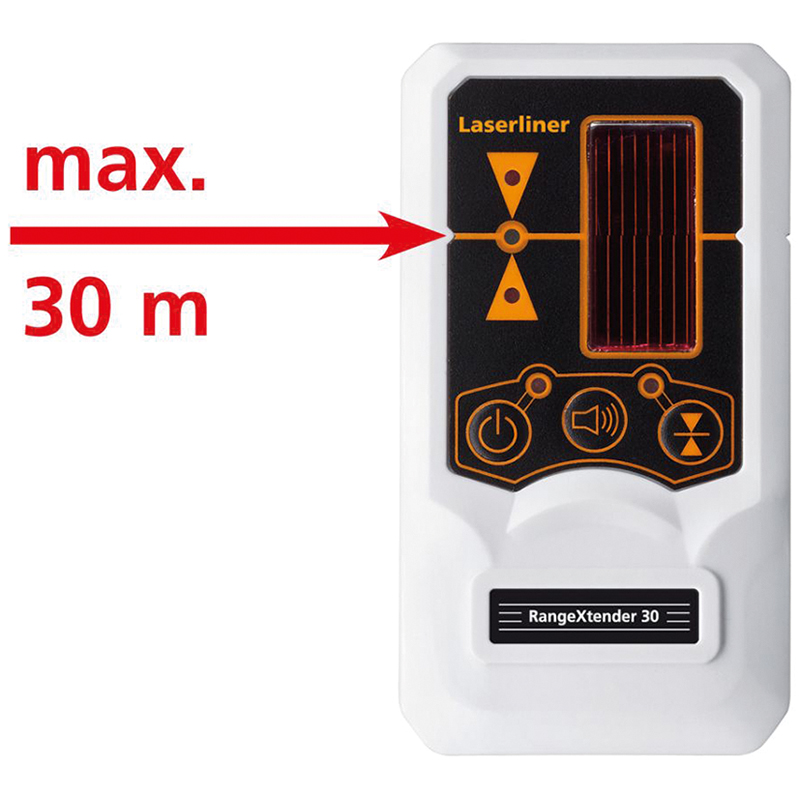 für alle Linienlaser mit roter Laserdiode und RX-READY Technologie, mit RX-READY pulsieren die Laserlinien mit einer hohen Frequenz, der RangeXtender RX 30 erkennt durch dieses Pulsieren die Laserlinien bis max. 30 m Entfernung, mit der Universalhalterung kann das Gerät an Messlatten befestigt werden, integrierter Kopfmagnet, schnelle Ausrichtarbeiten im Nah- und Fernbereich