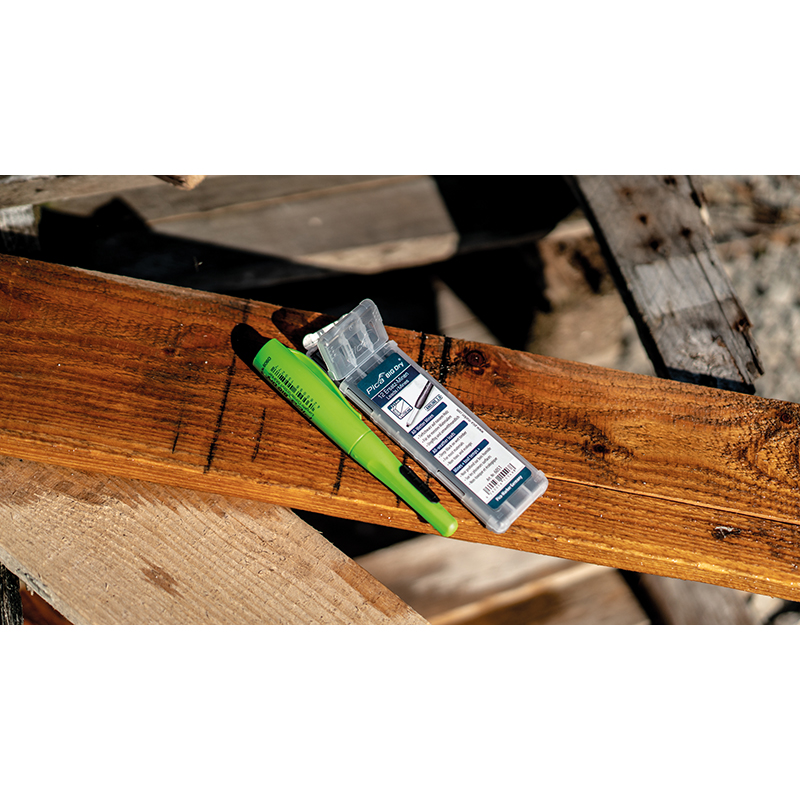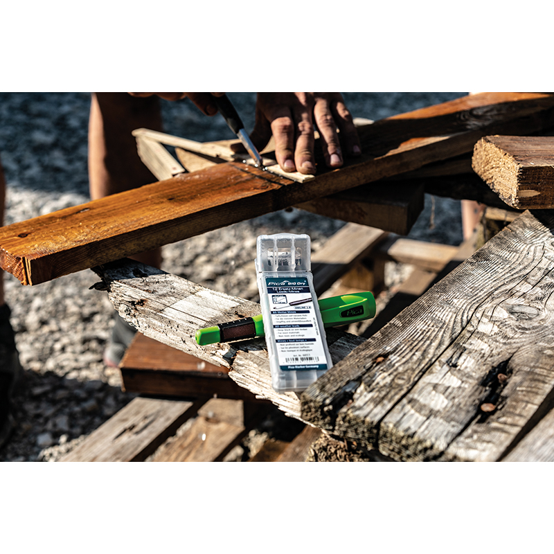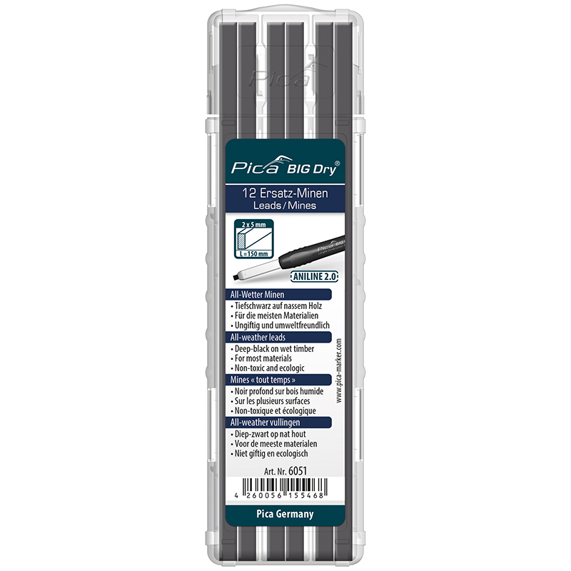 All-Wetter-Mine Aniline 2.0, ideal auf nassen Materialien, tiefschwarzer Abstrich auf nassem Holz, neue umweltfreundliche Rezeptur, Rechteckminen mit 2 x 5 mm im Querschnitt, 150 mm lang, im Minenetui zur sicheren Aufbewahrung