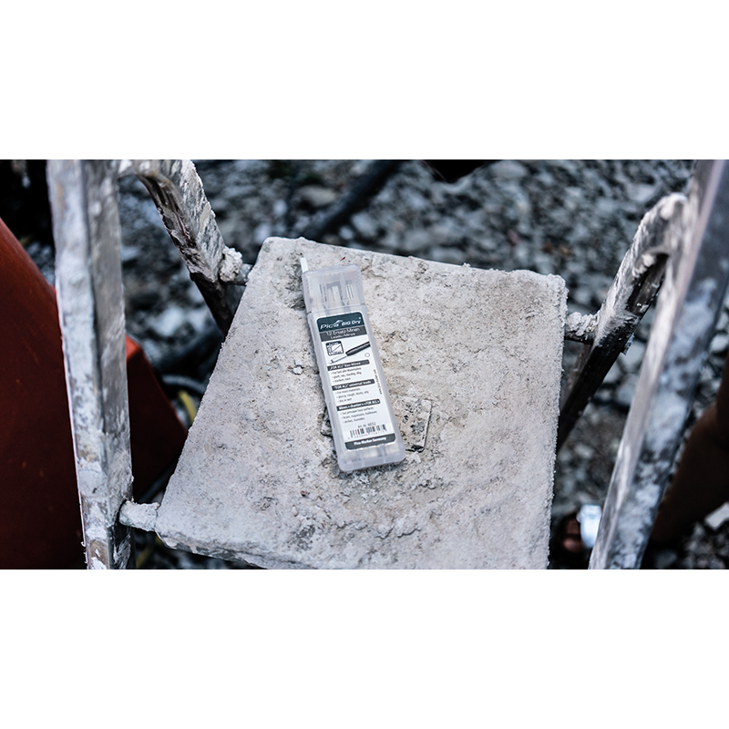 universell für fast alle Materialien, trocken oder nass, glatt oder rau, staubig oder ölig, von glatten Flächen feucht abwischbar, schlägt beim Überstreichen mit Dispersionsfarbe nicht durch, ideal auf dunklen Materialien, vor Temperaturen > 30° C schützen, Rechteckminen mit 2 x 5 mm im Querschnitt, 150 mm lang, im Minenetui zur sicheren Aufbewahrung