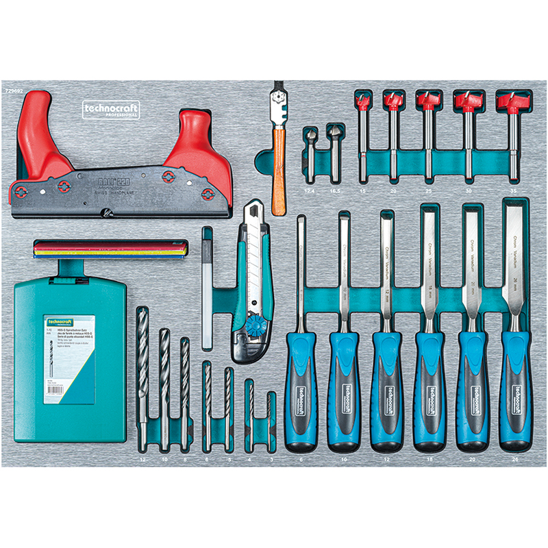 Werkstattwagen "SWISS TEAM WOOD" bietet für den Holzverarbeiter alles was sein Herz begehrt, jedes Werkzeug hat seinen festen Platz in den hochwertigen CNC-gefrästen Schaumstoffschalen, die Kunststoffabdeckung vereinfacht die Reinigung und erhöht die Lebensdauer der Schaumstoffschalen, der Werkstattwagen hat 8 Schubladen wovon 5 mit Schalen bestückt sind und in einer Schublade hat es noch lose Werkzeuge, zwei Schubladen bieten noch viel Platz für eigene Werkzeuge und Verbrauchsmaterialien, der Wagen hat Einzelschubladenverriegelung, es kann nur eine Schublade auf einmal geöffnet werden, dies verhindert das Kippen des Werkstattwagens, einklappbarer Seitentisch, Papierrollenhalter, zwei Spraydosen-Halter, Stossschutzkanten, robuster Handgriff, extra leise Rollen aus TPR Kunststoff, inkl. 3 Schlüssel, Rohling SILCA BMB 5, kann beim Schlüsselservice kopiert werden