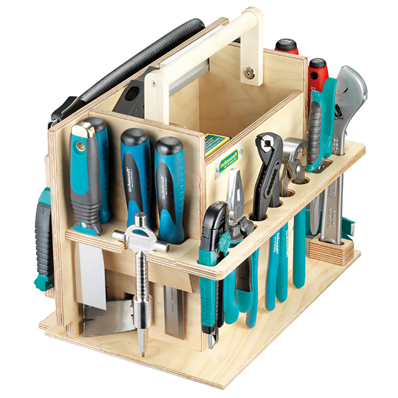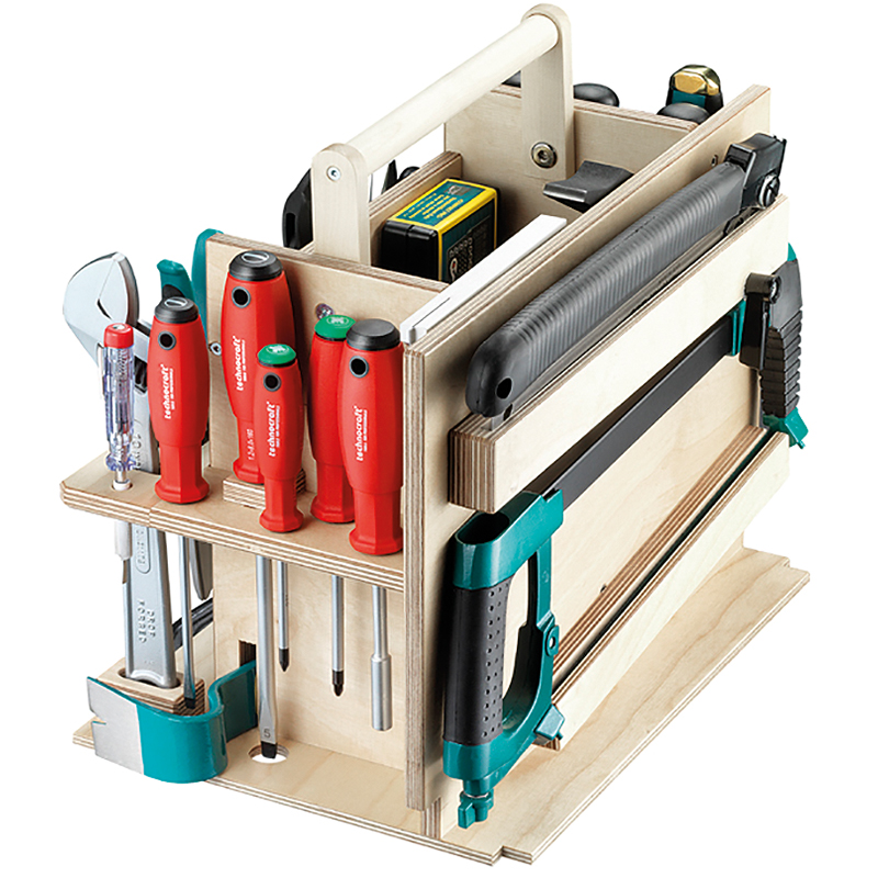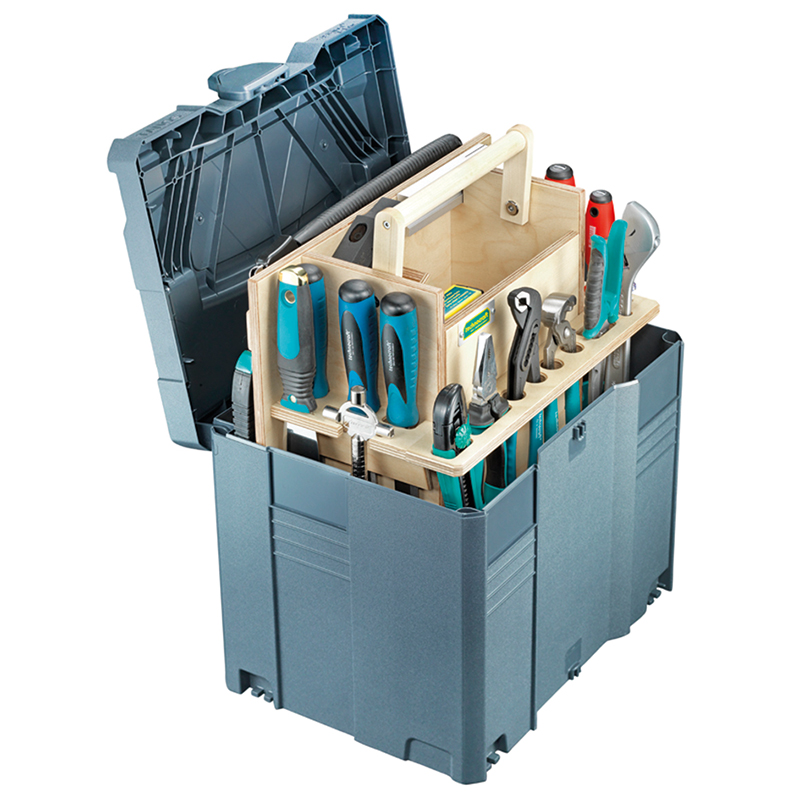 dieser mobile Systainer beherbergt 81 präzise organisierte Werkzeuge inklusive einem 300 mm Metallsägebogen, verpackt in einem herausnehmbaren Holzeinsatz, robust und belastbar, trägt er bis zu 25 kg im Inneren und sein Deckel hält bis zu 100 kg stand, dank T-LOC System lässt er sich schnell und einfach mit anderen Systainern verbinden