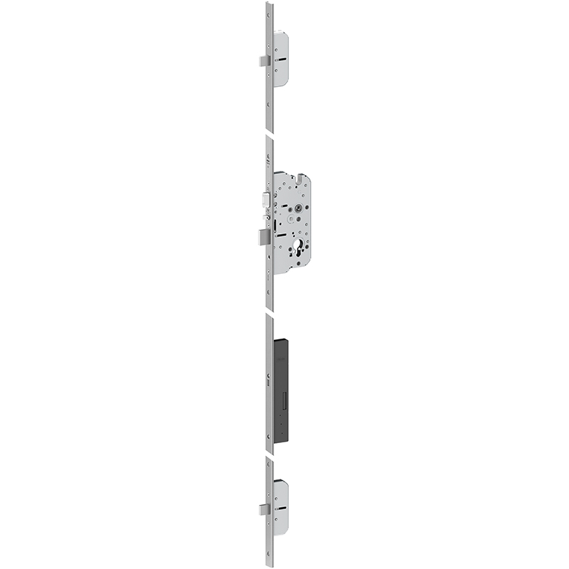 Motorisch öffnende Mehrfachverriegelung mit U-Stulp, integrierter Selbstverriegelung, Fallenblockierung und Ablaufsteuerung. Für Haupt- und Nebeneingangstüren im Wirtschaftsbau, v.a. bei Museen, Banken, Schulen, Universitäten und Polizei- und Justizgebäuden mit Hochsicherheitstüren. Bedienung von aussen (Knopf/Stossgriff) über elektronische Identifikationsmedien oder über den Zylinder. Im Modus Tagesentriegelung = day (Selbstverriegelung inaktiv) ist ein schnelles Öffnen (t < 0.4s) möglich. Betriebsart ideal für stark frequentierte Türen, bei denen ein kontrollierter Zutritt erfolgen soll. ohne Kabel, ohne Zubehör