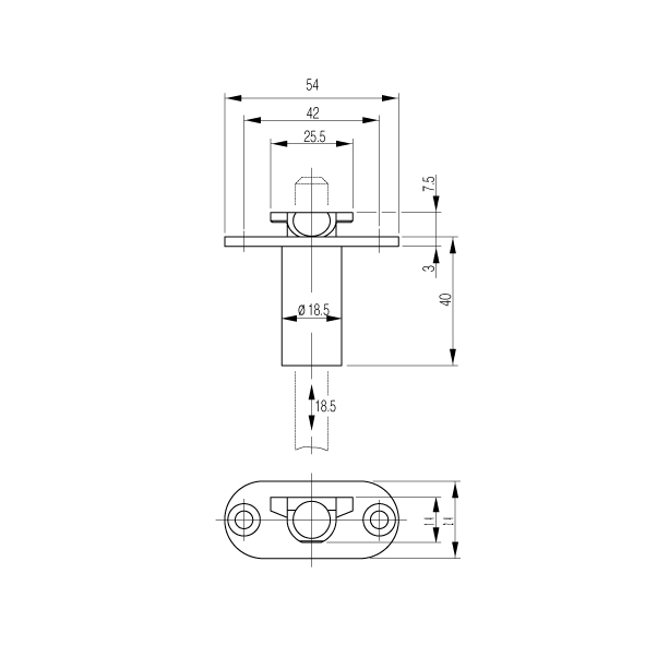 Stulp verzinkt 20 x 54 mm abgerundet, mit integrierter Stangenführung, Schaltfalle Kunststoff schwarz für Türluft 2 - 7 mm, auch für Falztreibriegelschloss mit Dornmass 45 und 65 mm geeignet