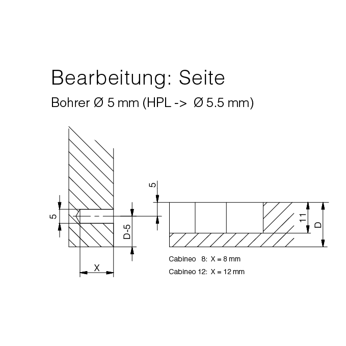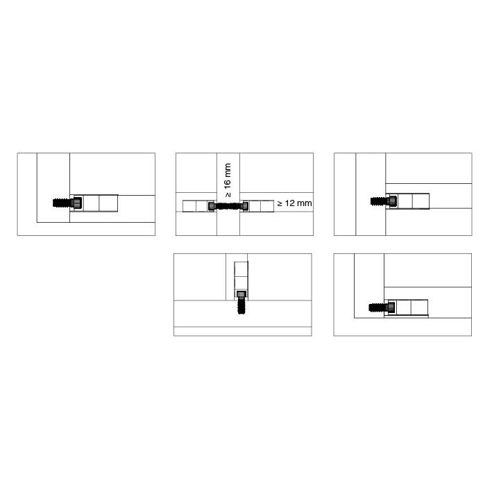 - Cabineo 8 für Mittelwände ab 16 mm und dünne Materialien ab 12 mm, mit schwarzen Schrauben,