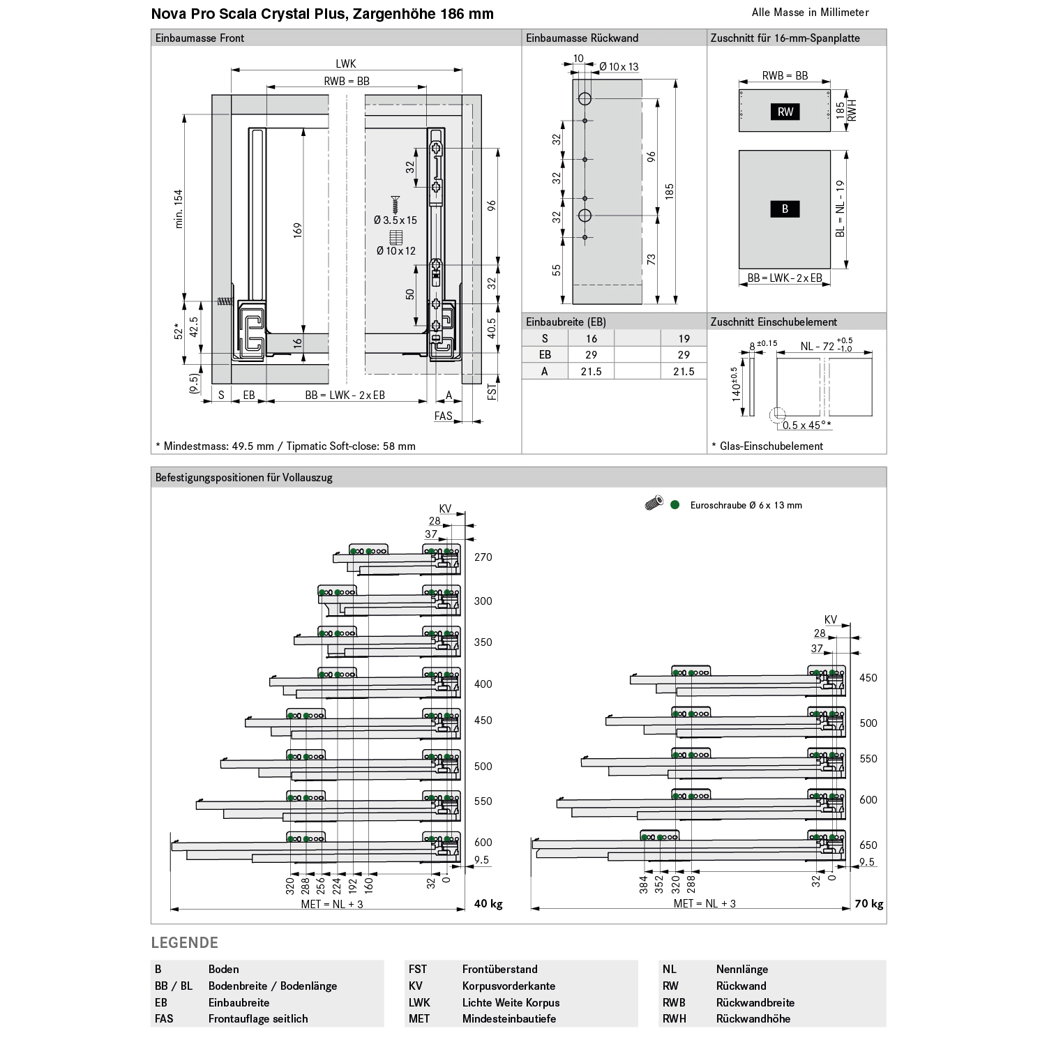 - Zuschnittmasse für Einschubelemente:
