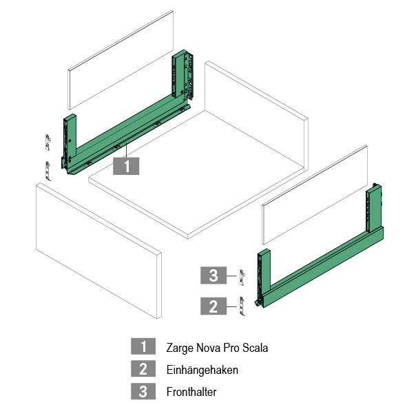 ohne Einhängehaken, Fronthalter und Einschubelemente