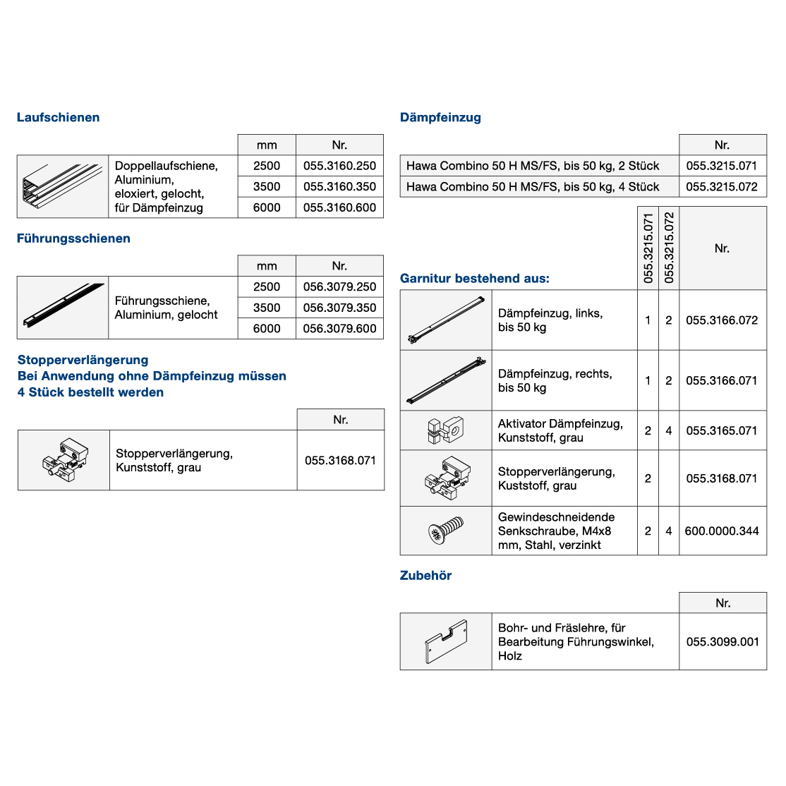 Schiebetürbeschlag Holz, für Dämpfeinzug, HAWA Combino 50 H Mixslide