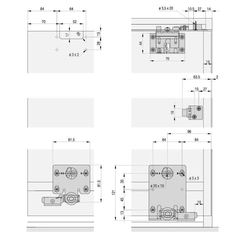 ohne Lauf- und Führungsschienen, ohne Zubehör