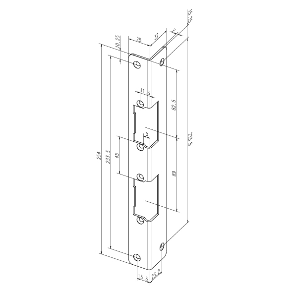 Winkelschliessblech effeff für 2-Fallenschloss, vorgerichtet für Elektro-Türöffner