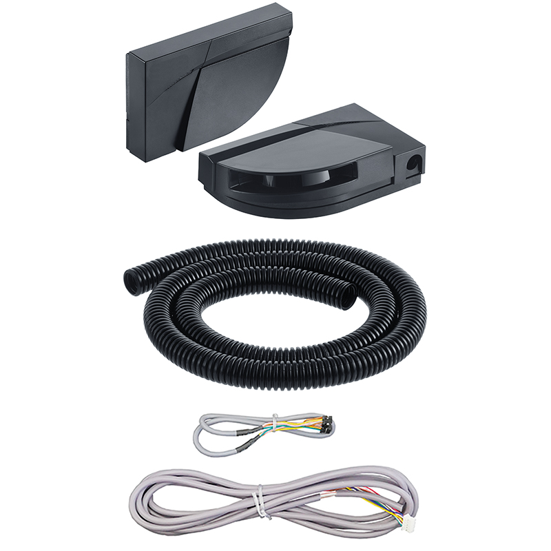 Lieferumfang Einzel-Scanner: Anschlussleitung 2,5m und Wellschlauch schwarz 650 mm, Schutzklasse IP 54, Montagesockel + 7 mm