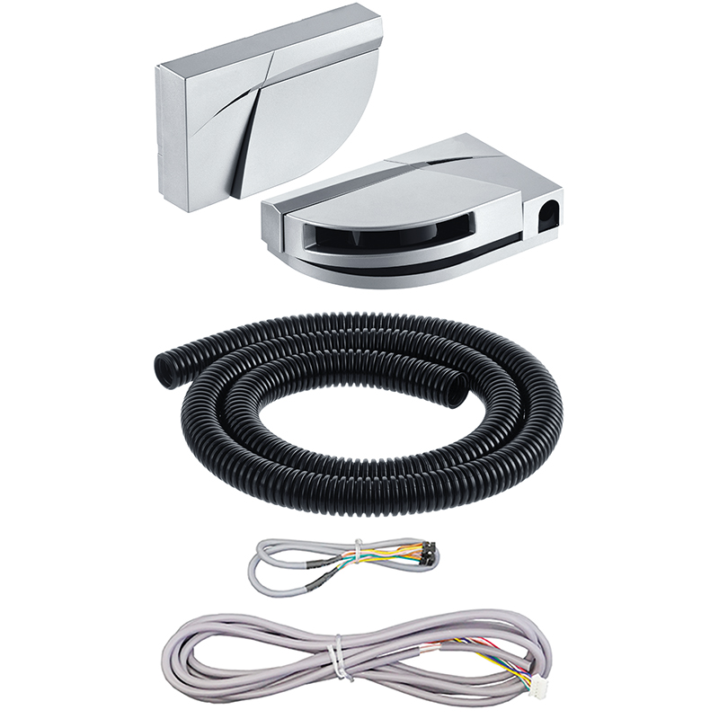 Laserscanner zur Absicherung des Drehbereichs automatischer Drehflügeltüren auf Band- und Bandgegenseite gemäss DIN 18650 / EN 16005, zusätzlicher Schutz der Nebenschliesskante im Bereich der Türbänder (Fingerschutz gemäss TÜV Zertifikat unter Beachtung der Restrisiken)