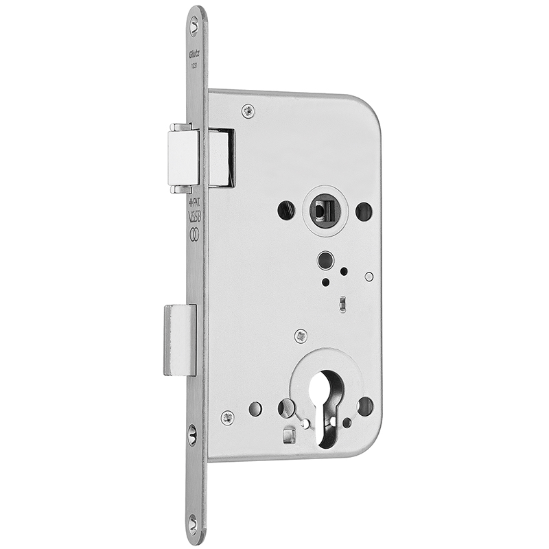 Panik-Einsteckschloss GLUTZ 1231, mit Rundstulp 18 x 230 mm Edelstahl matt