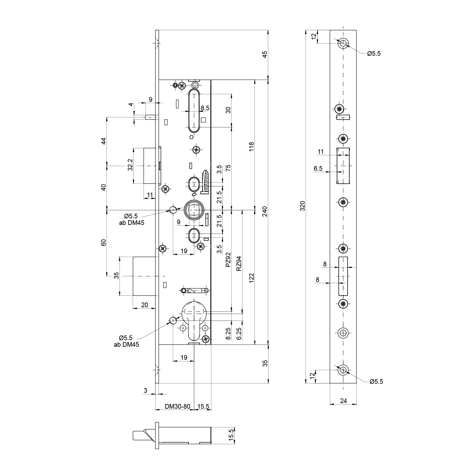 Panik-Einsteckschloss MSL 14544PE-SV, sFlipLock standard, 1-flüglig