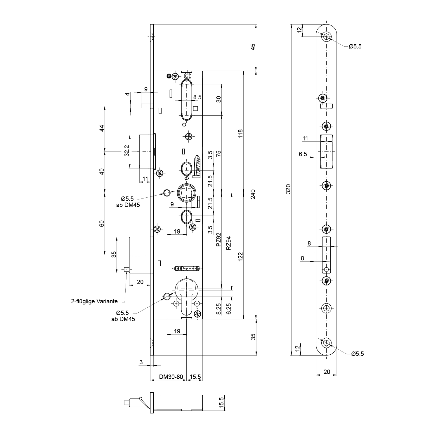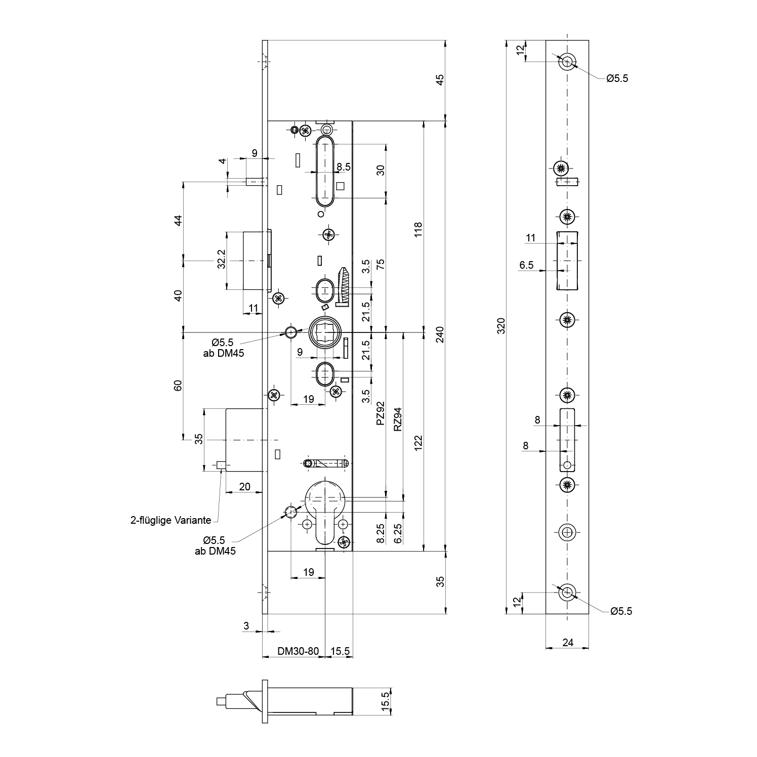 Panik-Einsteckschloss MSL 14544PE-SV-TF-ZF, sFlipLock standard, 2-flüglig