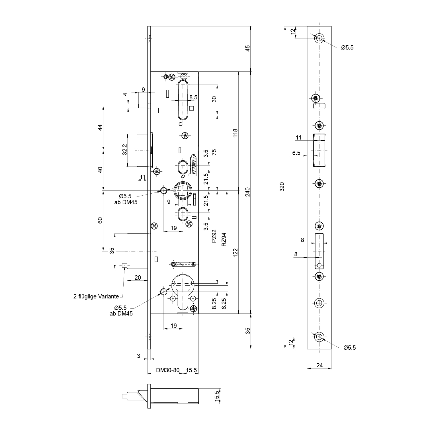 Panik-Einsteckschloss MSL 14544PE-SV-ZF, sFlipLock standard, 2-flüglig