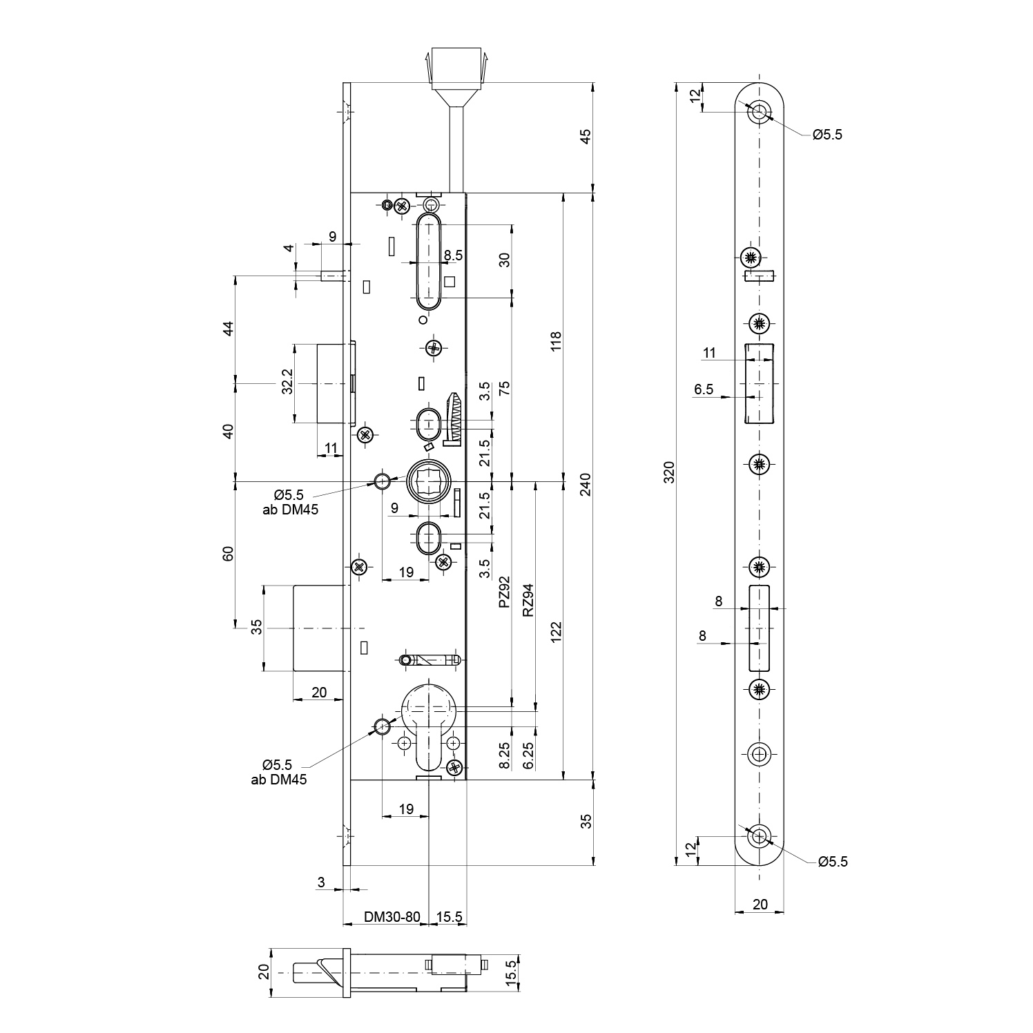 Diese Einsteckschlösser sind mit Überwachungs-/ Rückmeldekontakten ausgestattet. (Überwachung Steuerfallenstatus, Türdrückerstatus, Riegelstatus und Zylinderstatus). Zudem ist es zusätzlich mit einer mechanisch zuschaltbaren Tagesfunktion ausgestattet. (Schlüsseldrehung in offenem Zustand in Schliessrichtung bis zum Anschlag). Die Türe ist dadurch beidseitig begehbar, da die Kippfalle weich ist und analog einer Rollfalle funktioniert. Bei ausgeschalteter Tagesfunktion, (Schlüsseldrehung in offenem Zustand in Öffnungsrichtung), verriegelt das Schloss beim Schliessen der Türe automatisch (Selbstverriegelung). Das Verlassen bei verriegelter Türe, ist über den Innendrücker, eine Panikstange oder eine Pushbar jederzeit möglich. Diese ziehen den Langriegel zurück und gleichzeitig wird die Kippfalle weich (Panikfunktion). Von aussen ist ein Knauf oder eine Griffstange montiert. Die Türe lässt sich mit dem Schlüssel über den Wechsel von aussen öffnen.