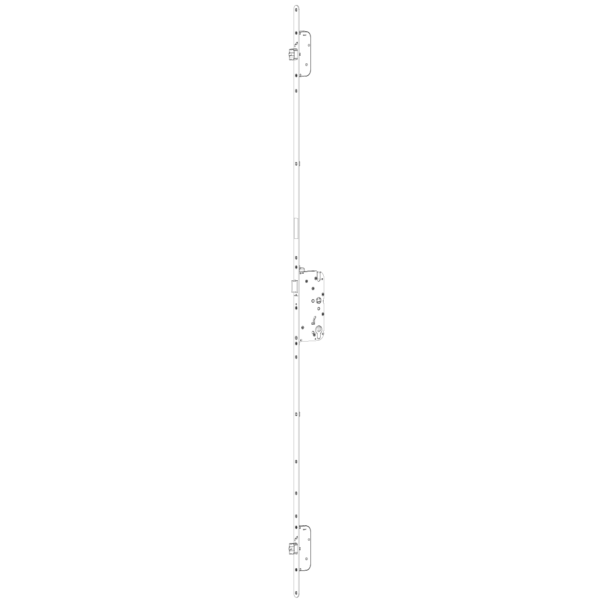 Panik-Mehrpunktverriegelung G-U-Secury Automatic, mit Selbstverriegelung, schlüsselbedient, Rundstulp 20 x 1750 mm Edelstahl matt Riegelsitze 730 / 760 mm