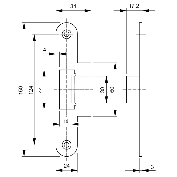 Edelstahl matt, abgerundet, mit Ausschnitt für Fallenriegel, universal DIN rechts und DIN links verwendbar, ohne Schrauben