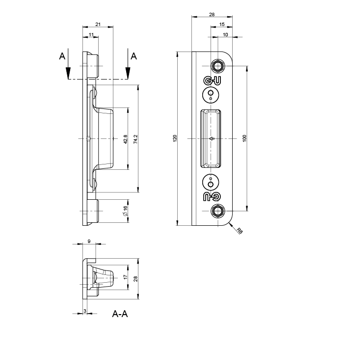 Riegelschliessblech G-U-SECURY, zum Einfräsen