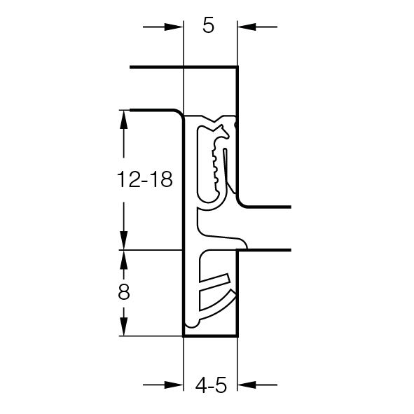 TPS-Qualität, thermoplastisches Elastomer Schaum, für Aussentüren mit ungünstigem Drehpunkt oder als Flügelfalzdichtung, Anschlagluft 5 mm