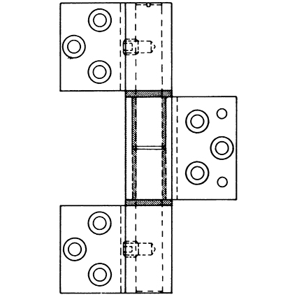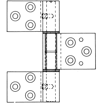 - 1 Scharnier bestehend aus: je 1 Mittel-, Ober- und Unterteil, Ausziehdorn, 2 Führungen, 2 Fixierschrauben und Schrauben.