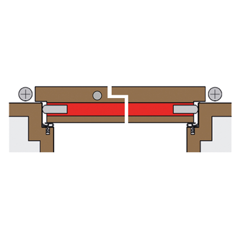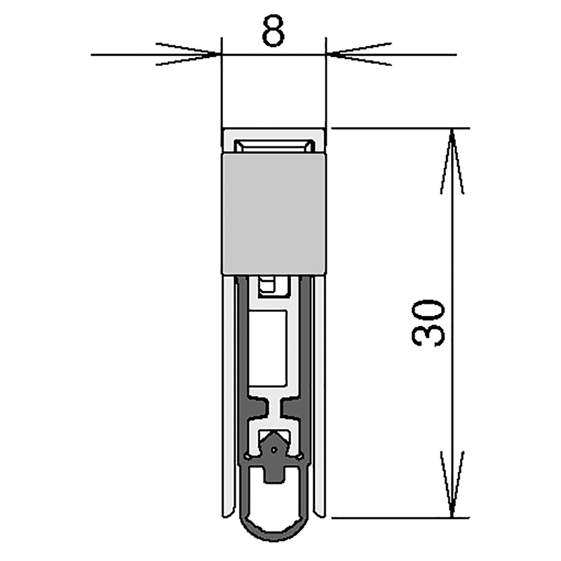 zum Einnuten für Nutmass 8 x 30 mm, bandseitig, parallel auslösend ohne seitlichen Versatz, selbstverlöschendes Silikon-Dichtprofil, bis 49 dB Schalldämmwert, gemäss Prüfbericht, Anschlag mit stirnseitigen Befestigungswinkeln aus Edelstahl, zum Abdichten von Boden-Luftspalten bis 20 mm, mit Gleitauslöser und ausschiebbarem Innenprofil