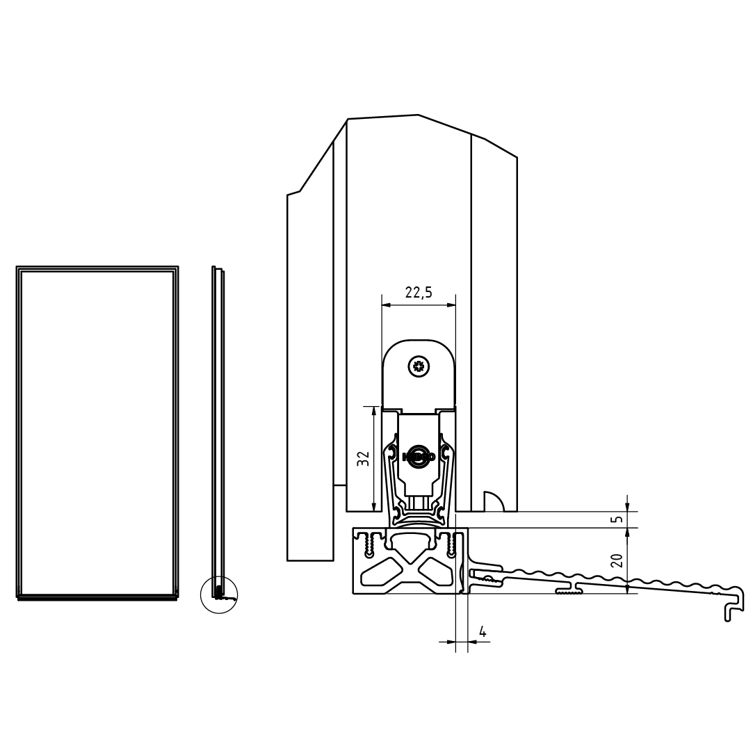 - Für Einsatz in doppelflügligen Türen muss Türabschluss ab Werk vorgerichtet bestellt werden.