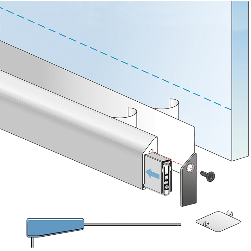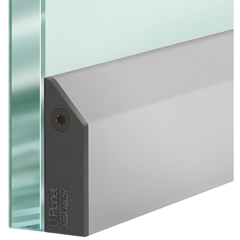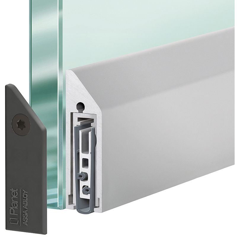 Aluminium, automatische Türabsenkdichtung im eleganten Design, ideal für nachträgliches Abdichten von Glas-, Metall-, Aluminium- und Holztüren, bandseitige Auslösung mit Parallelabsenkung und automatischem Ausgleich bei schiefem Boden, einfachste Montage mit Klebebandset,