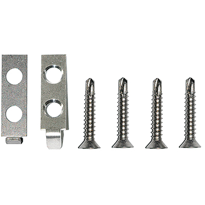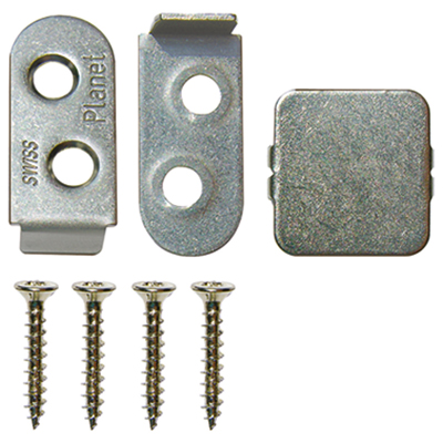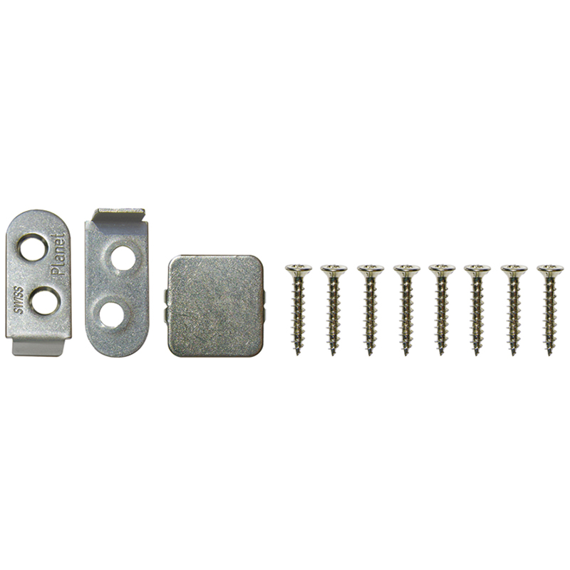 2 Haltewinkel mit Schrauben und Auflaufplättchen zum Einschlagen