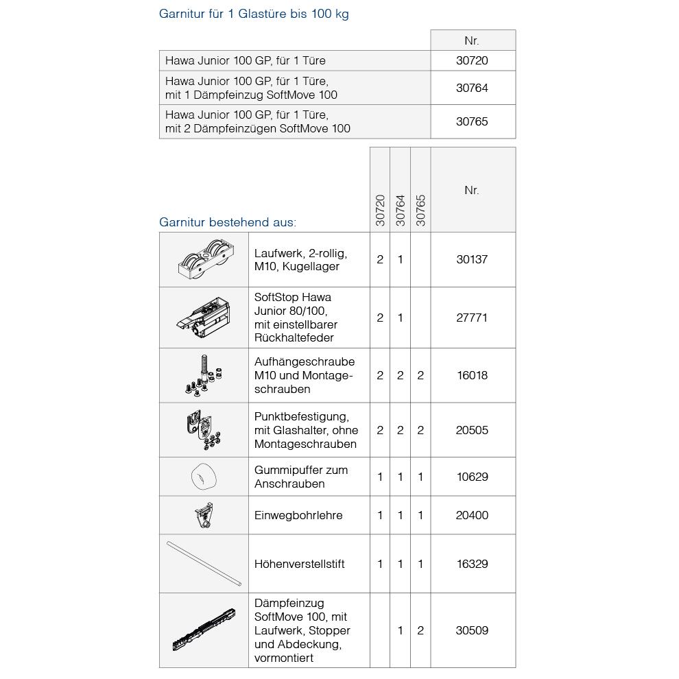 Schiebetürbeschlag Glas, HAWA Junior 100/GP