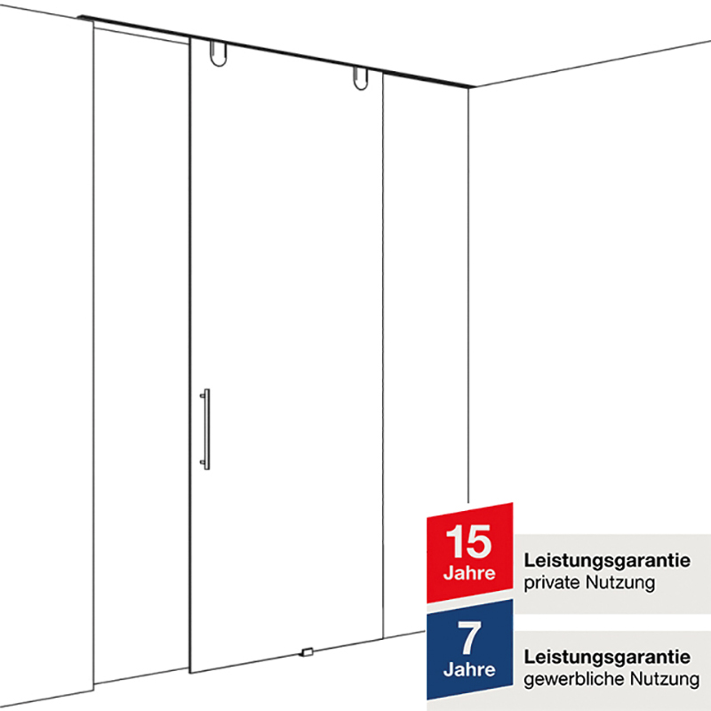 mit Punktbefestigung für Ganzglasschiebetüren ESG / VSG, für Deckenmontage, Laufwerke mit Gleitlagertechnik für hohe Laufruhe, barrierefreies Öffnen und beidseitiger Dämpfeinzug ab Türbreiten von 800 mm, höhenverstellbar ohne Aushängen der Türe, für Glas 8 - 12,7 mm, Laufschiene für Wand- und Deckenmontage mit integriertem Clip-System, ohne Abdeckkappen, ohne Bodenführung