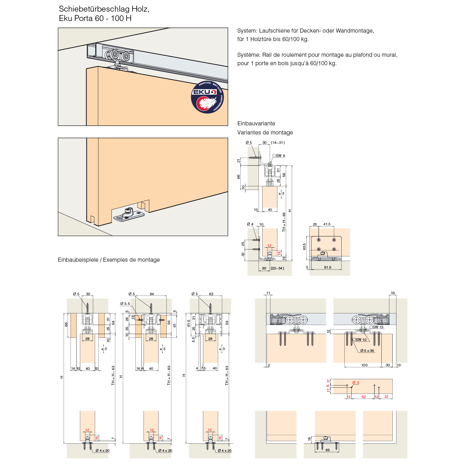 Schiebetürbeschlag Holz, HAWA Porta 60 - 100 H / HC