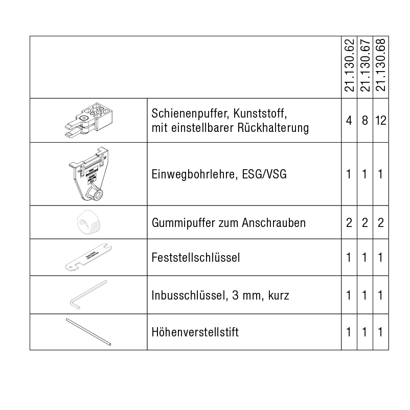 70 F | für 6-türige Anlagen | Ordena 70 | 20594 | Puffer | |