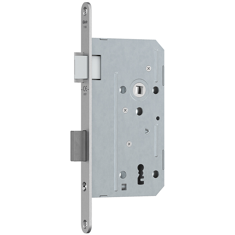 Einsteckschloss GLUTZ 1106, mit Rundstulp 18 x 230 mm Edelstahl matt